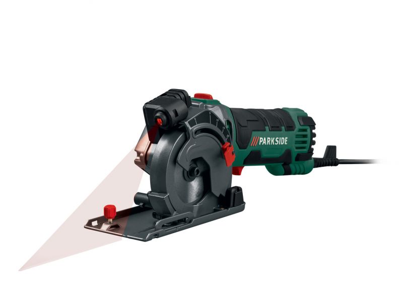 As you can see, the Parkside PTS 500 C3 is a mid-range plunge saw with a power of 500 W and a cutting depth of 0-25 mm. It has a laser for increased cutting accuracy, a spindle lock, and dust extraction. It is priced at around $60.